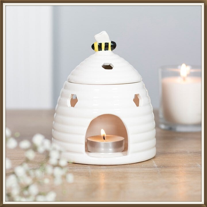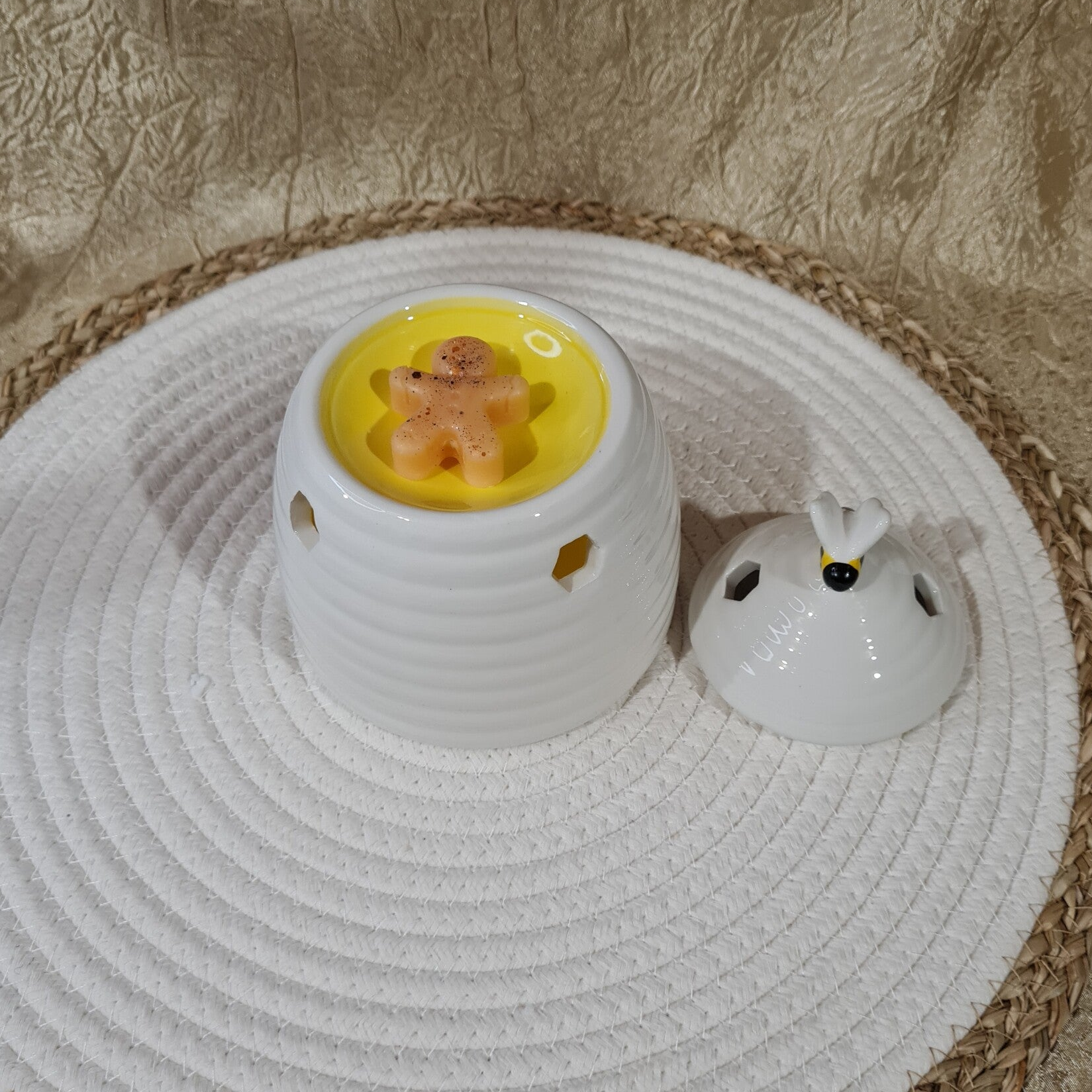 Un brûle-parfum qui se présente sous la forme d'une adorable ruche blanche avec une douce abeille sur le couvercle. Des découpes en forme de nid d'abeille complètent ce style unique.